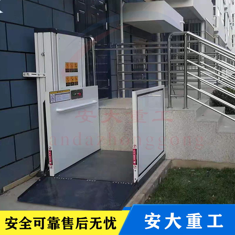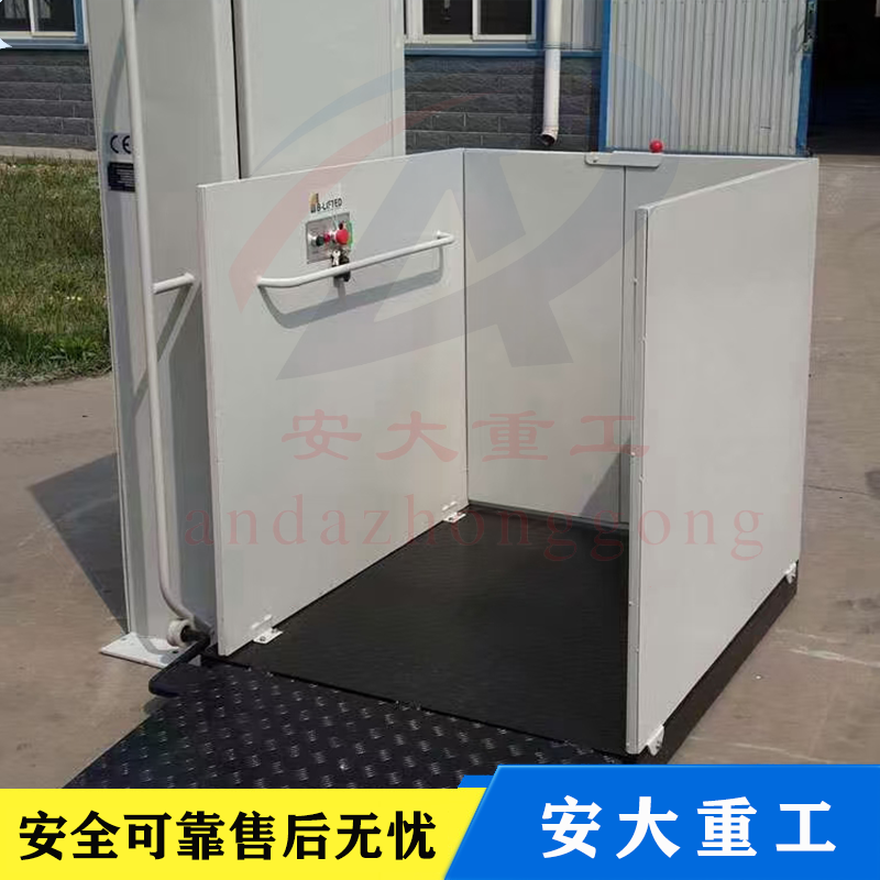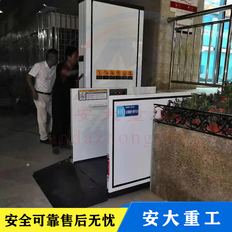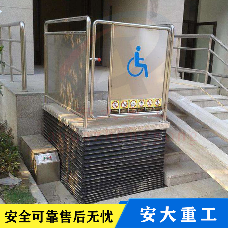 無障礙式升降平臺,直接安裝于地面,無需土建配套地坑,施工簡單,產品放置戶外不易積水,不易生銹,維護簡便,升降高度1-6米。