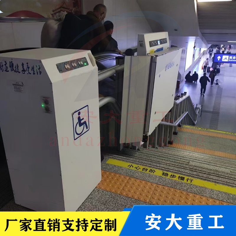 斜掛式無障礙升降平合按其運(yùn)行方向分曲線型和直線型二種。直線型多采用齒輪齒條式驅(qū)動(dòng)機(jī)構(gòu),沿樓梯做上升和下降,只能作直線運(yùn)行不能轉(zhuǎn)彎,傾斜角一般不大于35度,適用于樓層較低、中間沒有水平段的直線型樓梯。曲線型采用繩球鏈?zhǔn)絺鲃?dòng),不僅能做上升和下降,還能水平、轉(zhuǎn)彎和螺旋形運(yùn)行,適用范圍較為廣。該設(shè)備為乘坐輪椅的殘障人員上下樓梯提供了便利,現(xiàn)被廣乏地應(yīng)用在家居住宅和公共場(chǎng)所的樓梯上